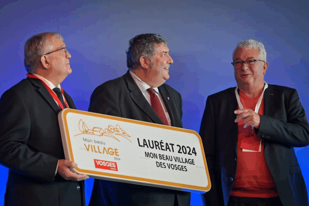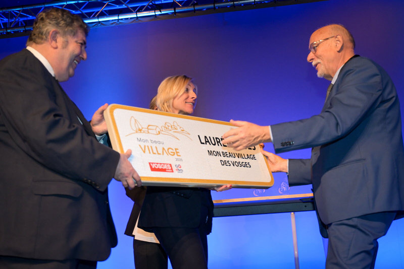 Dominique PEDUZZI, Président de l’AMV 88, a remis le trophée “Mon Beau Village” à la commune de Rollainville.