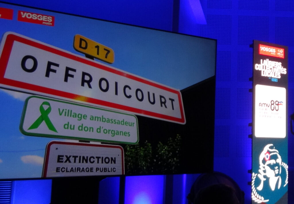 Dominique PEDUZZI, Président de l’AMV 88, a remis le trophée dans la catégorie “Solidarité” à la commune d’Offroicourt pour son action en faveur du don d’organes.